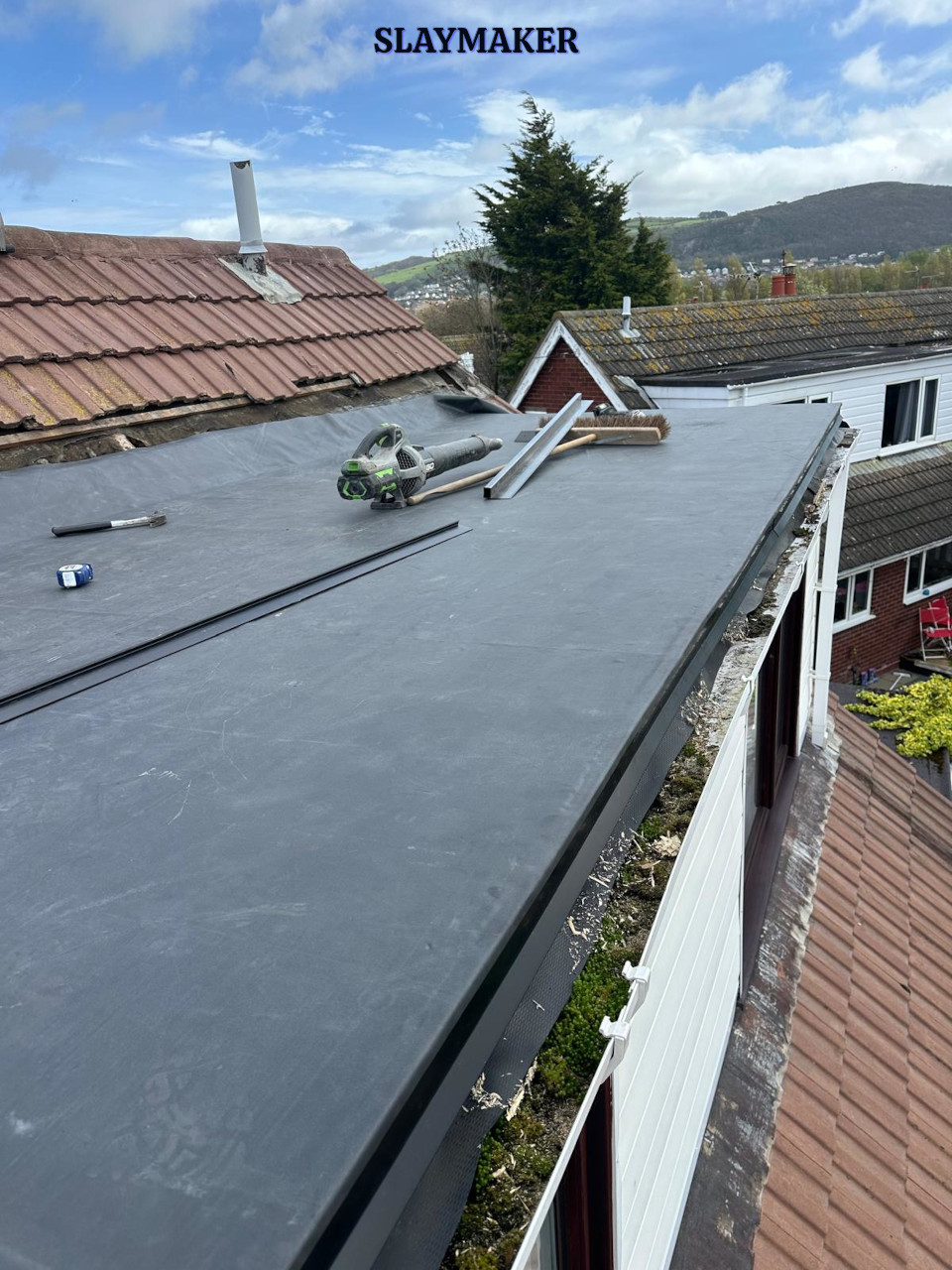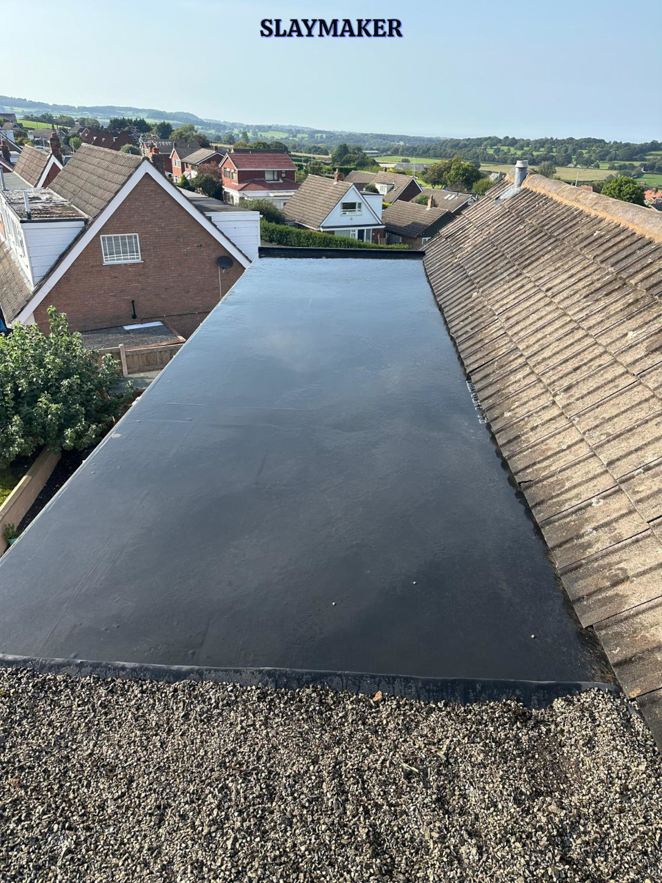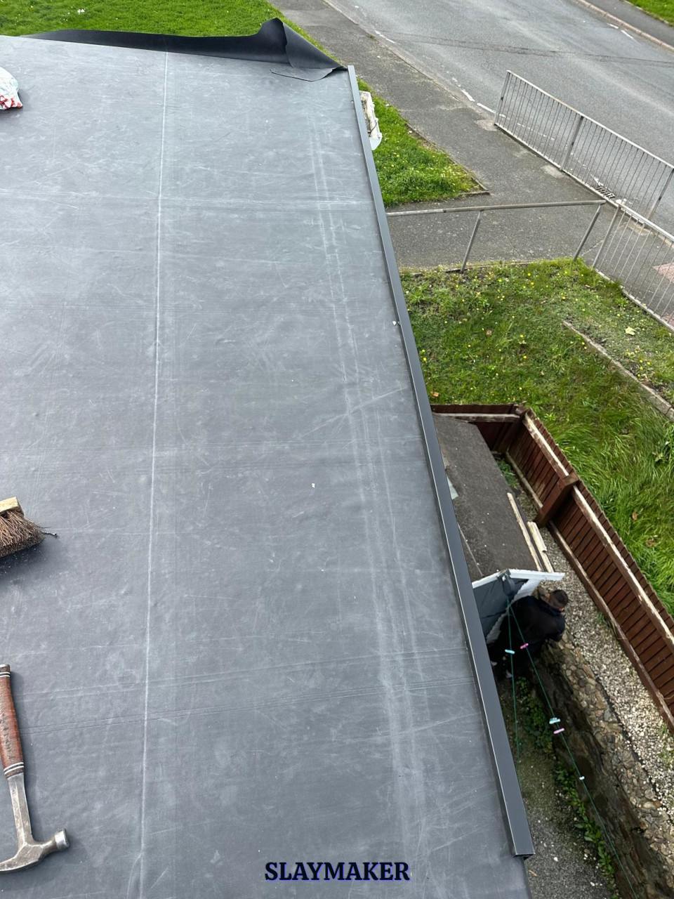 Removal of existing rotted decking and replacement with Oriented Strand Board (OSB) 18mm thick decking. Seal all joints and then bond a single sheet of EPDM Firestone Rubber surface membrane. Finally, install uPVC edge and drip drip trims.