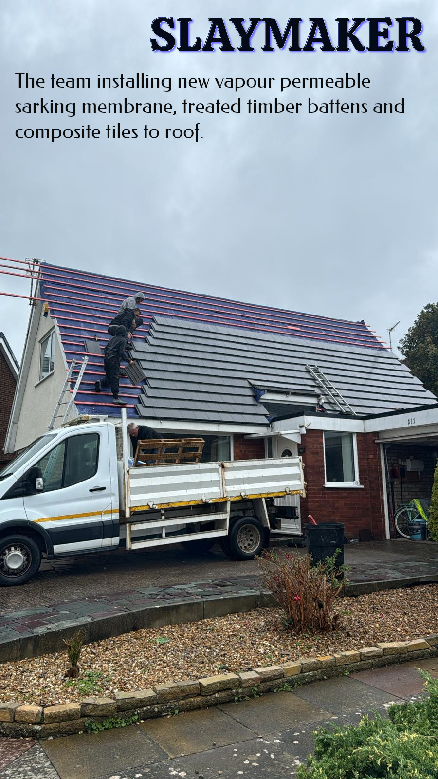 Not every job is a big 'un. Selective hip tile replacement after storm damage.