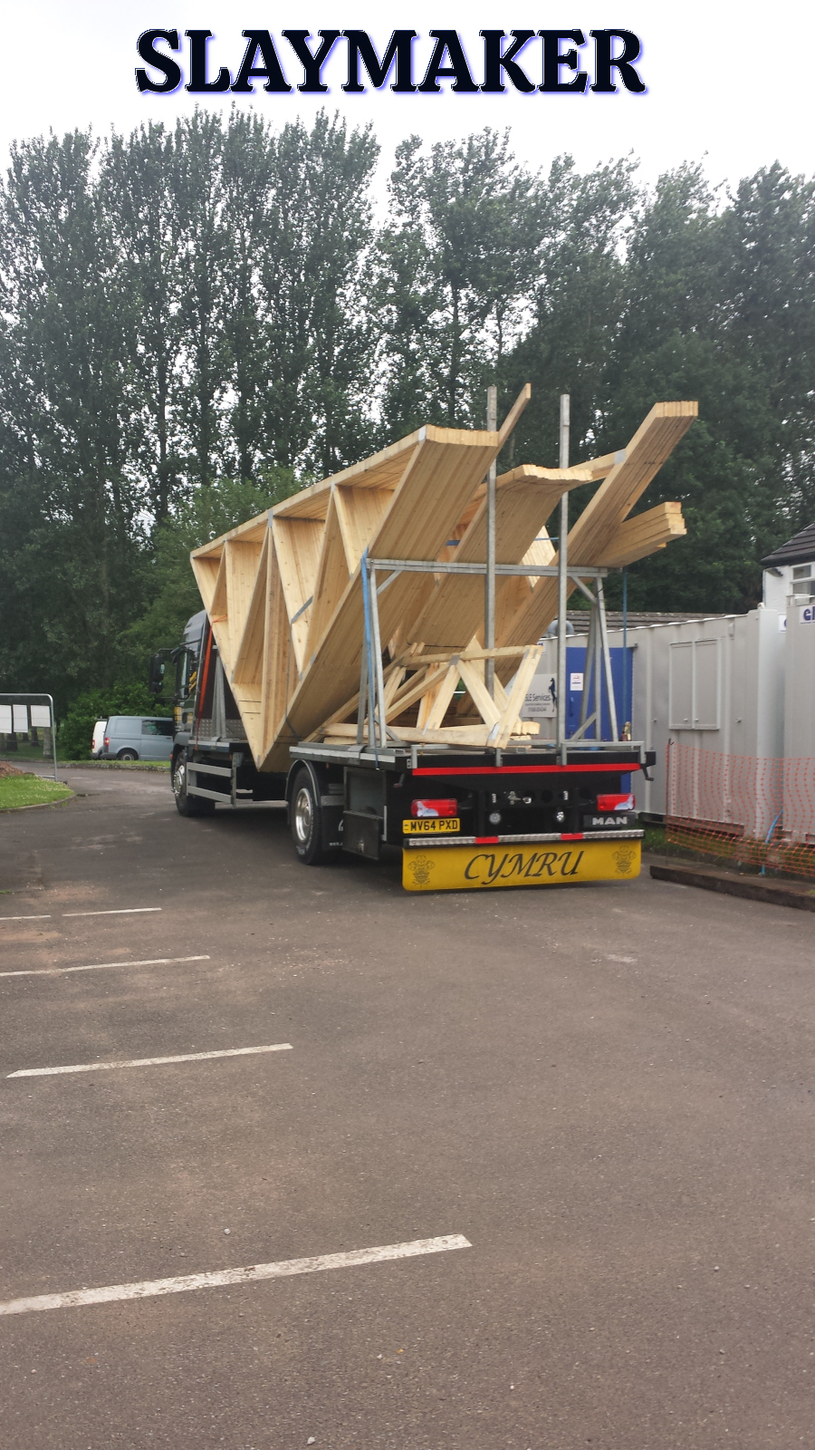 Roof trusses arriving for BIG roof replacement job down the Conwy Valley.