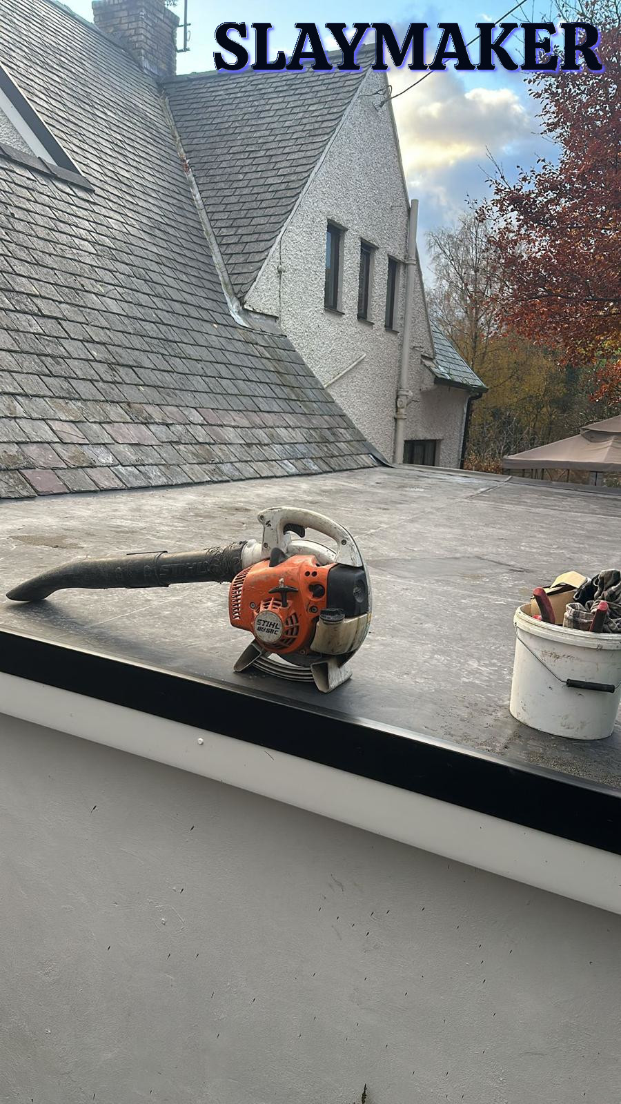 New EPDM rubber roof with uPVC edge trim. EPDM is often available in sheets sufficiently wide to surface the entire roof of an extension, so there are no joints to cause a problem in future years. The Firestone Rubber Company gurarantees their EPDM sheets for a period of 25 years.